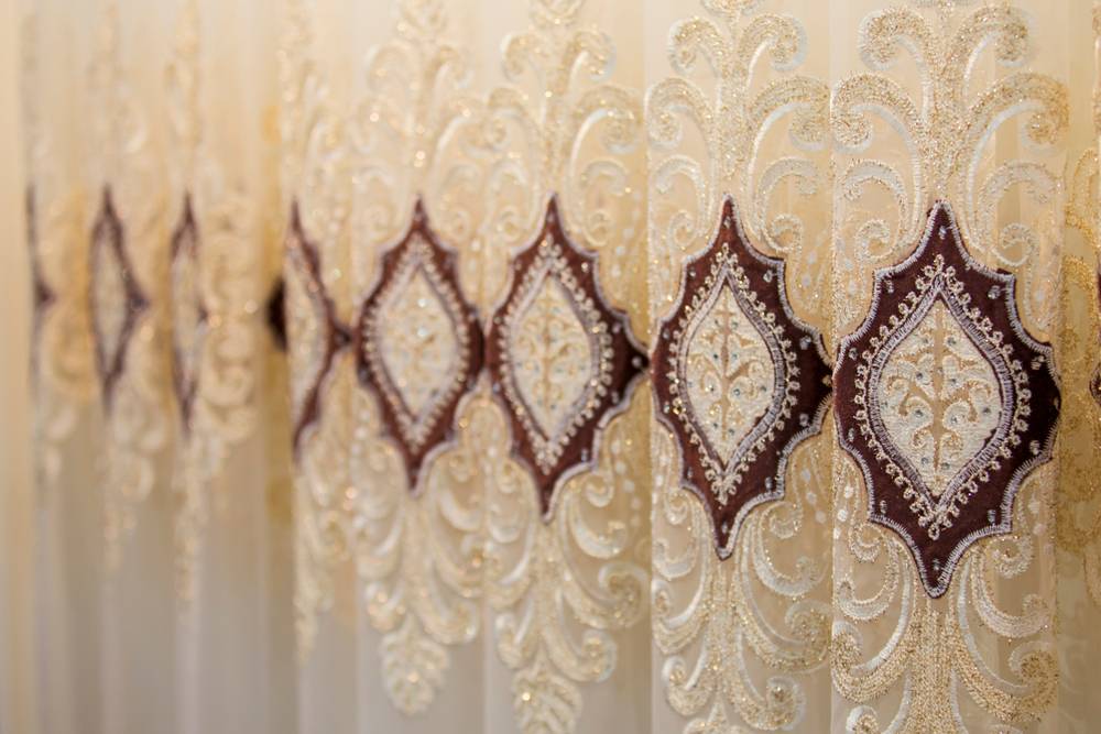 - Для залы необходима красивая, презентабельная ткань: органза, кисея, вуаль, гладкая или с рисунком, кружевными вставками.