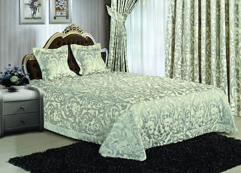 Жаккардовые шторы в спальне отлично защитят от солнцаИсточник арт-интерьер.москва
