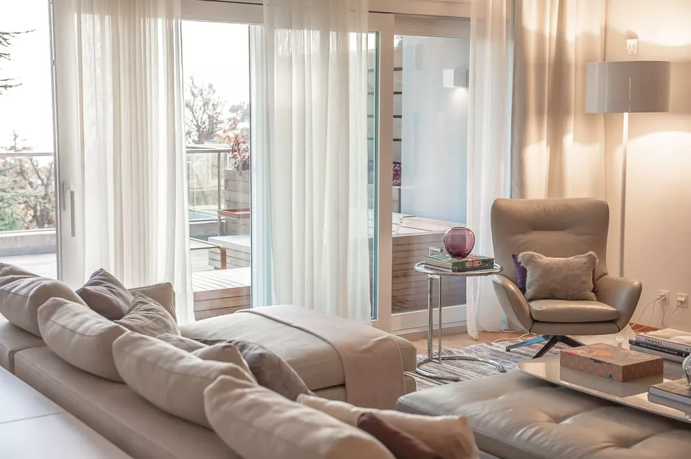 - И наоборот, если вид из окна очень красивый и хочется его подчеркнуть и продлить перспективу, то лучше всего выбрать прозрачную ткань.