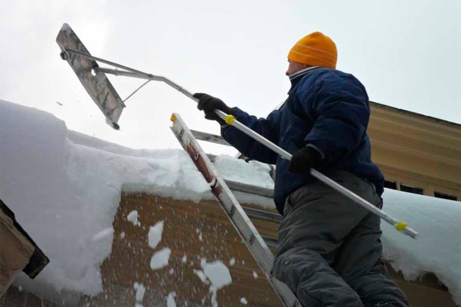 На кровле дома размерами 10х10 м может накопиться много снега. Каждые 10 см высоты — это 10 куб. м массы. Уборка проводится трудоемким ручным сбрасыванием сверху вниз или механизированным с помощью снегоуборочных машин. Эти агрегаты весят не более 90 кг, при этом способны выбрасывать снег на расстояние до 15 м.
