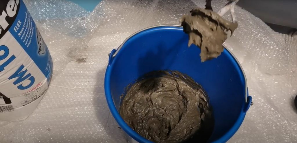 - В соответствии с инструкцией приготавливается раствор плиточного клея. Количество воды, которое необходимо добавить на единицу массы сухого вещества, указано в инструкции по применению состава на упаковке.