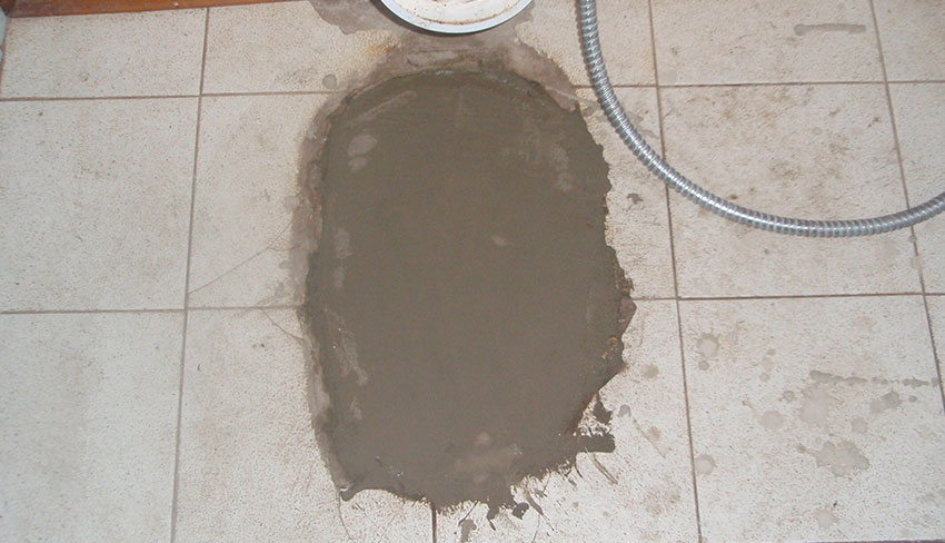 Если же унитаз был прикреплен к полу цементом, то сначала очищаем получившееся после съема унитаза углубление от цемента. Затем пол нужно выровнять. Это можно сделать с помощью густого раствора или же стяжки.