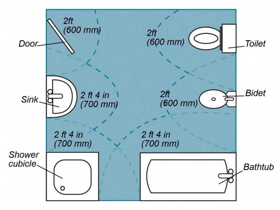 Расположение мебели и сантехники может быть как симметричным, так и асимметричным, самое главное, чтобы между отдельными элементами оставалось свободное пространство. Только в этом случае комната будет выглядеть достаточно просторной.