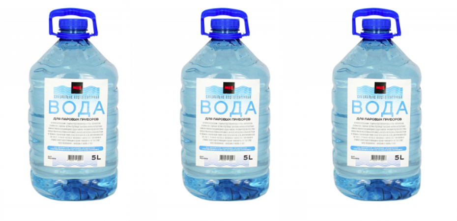 В отделах бытовой техники можно приобрести воду для парогенераторов и утюгов.