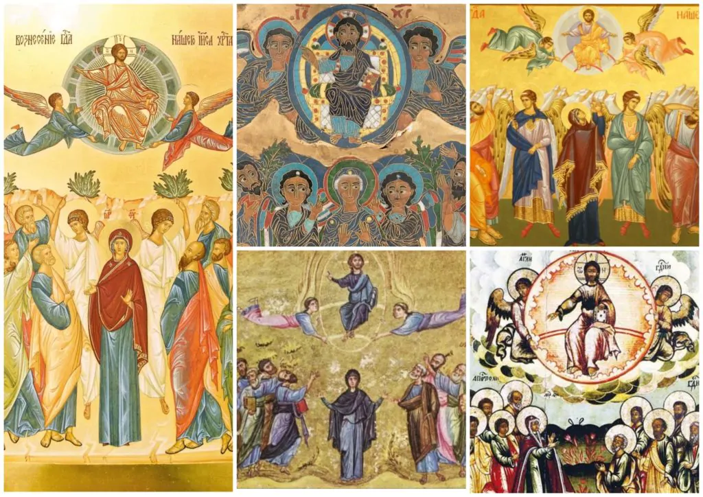 Тот факт, что на ряде ликов Мессия изображен в меньших масштабах, чем ученики его и Дева Мария, неслучайный. Этот прием называется прямой перспективой, который является нехарактерным для традиционной иконографии. Но с его помощью удается подчеркнуть, что восхождение Иисуса на небеса было подлинным.