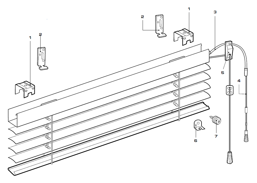 Все виды жалюзи имеют подобную конструкцию, включающую в себя – ламели, защёлки, скобы, держатели (нижний карниз) и механизм для управления изделием. Но вместе с тем, каждый тип этих штор, имеет свои особенности по установке.