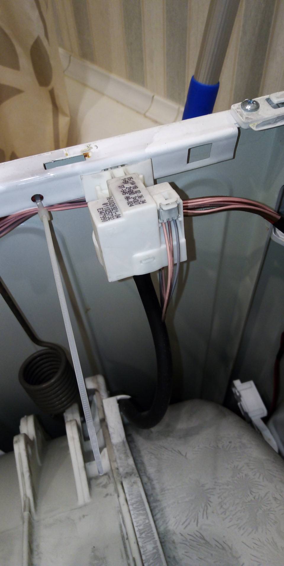 Я делал ремонт в первый раз, по этому делал фото тех подключений и узлов, где сомневался. Так и вам рекомендую делать. Особенно в подключении проводов.Ну и дальше отключаем все разъёмы, которые помешают нам вытащить барабан. Обязательно нужно раскрутить и снять водозаливной короб, куда подключается шланг подачи воды, он тоже на саморезах и не трудно снимается.Отключаем пресостат, который отвечает за выключение подачи воды (уровень воды). К нему идет резиновый шланг с низа барабана.