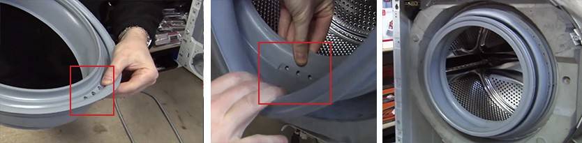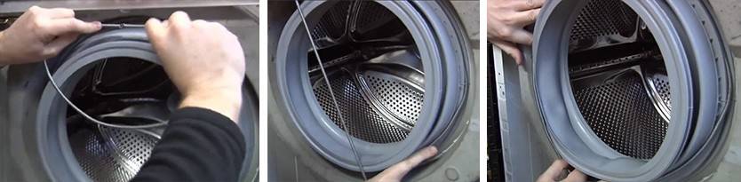 Пришло время установки манжеты. Приобретаем новую оригинальную резинку и осматриваем ее на предмет брака. Если она целая натягиваем манжету на края люка