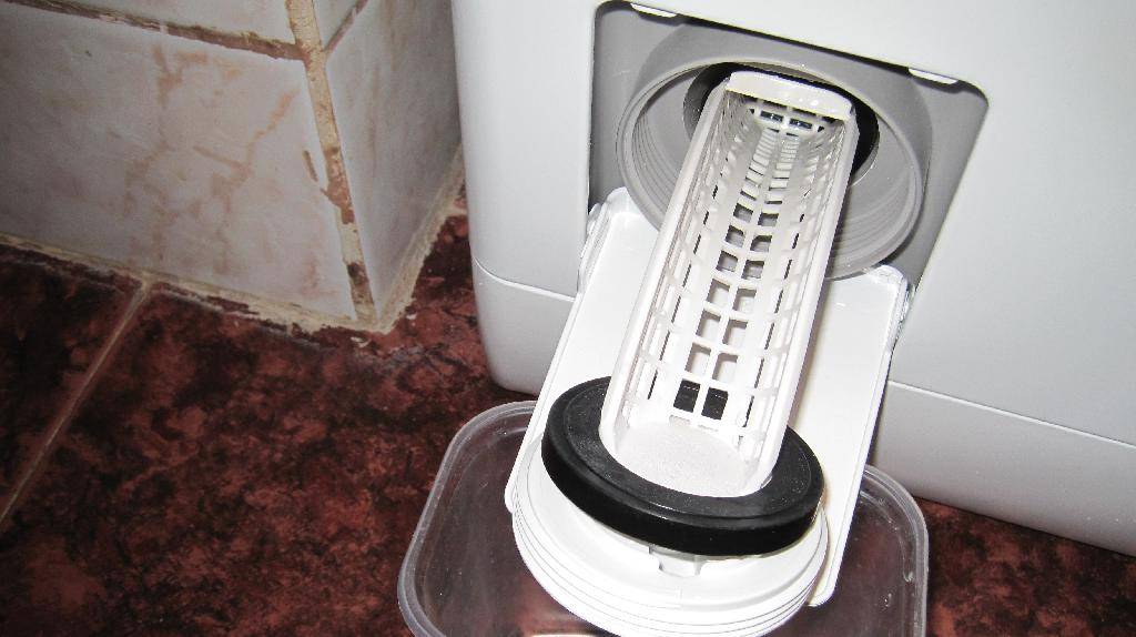 Если не удаётся это сделать то после первой пробной стирки после ремонта прочистить фильтр грубой очистки перед сливной помпой. Фильтр находится спереди машины в нижней части машины под фальшпанелью.