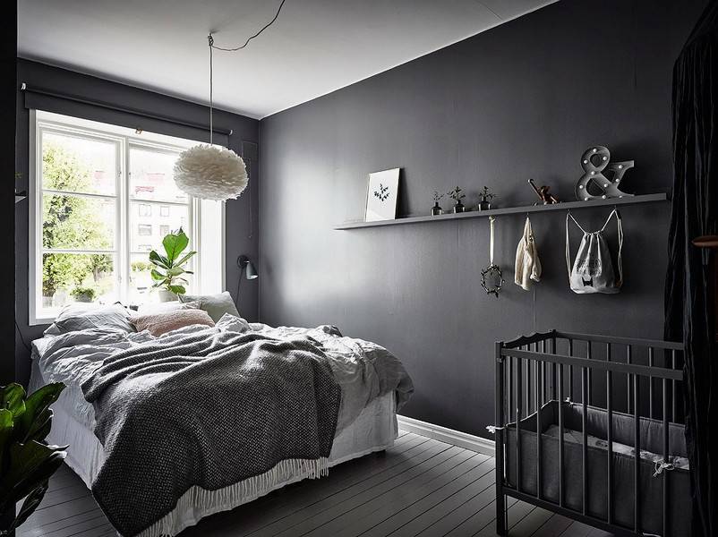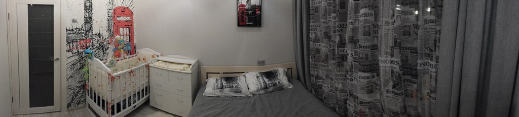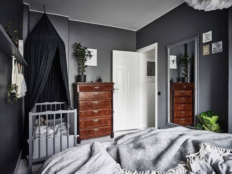 Кроватка расположена напротив кровати взрослых, что позволяет постоянно наблюдать за малышом